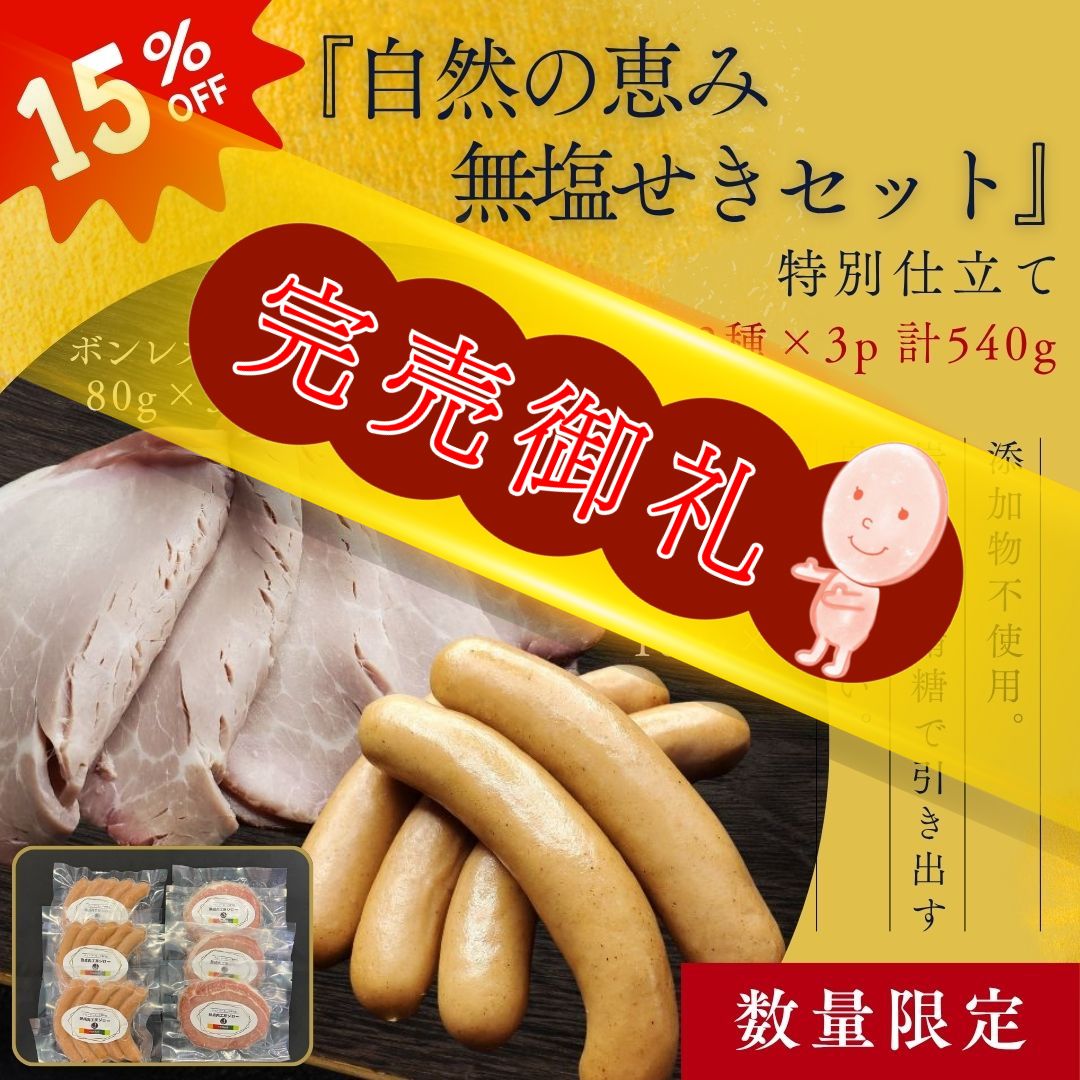 数量限定【送料込】自然の恵み無塩せきセット/オンラインショップ限定/保存料・化学調味料・結着剤・増量剤・発色剤無添加/ドイツ製法/ボンレスハム240g・ウインナ―300g