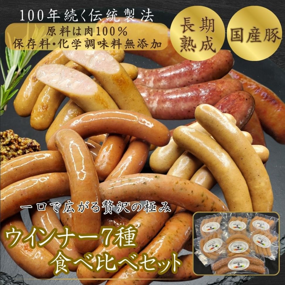 【送料込】ウインナ―7種食べ比べセット/保存料・化学調味料・結着剤・増量剤無添加/ドイツ製法/細挽き・チーズ・あら挽き・ガーリック・ハラペーニョ・マーティン・ハラペーニョフランク