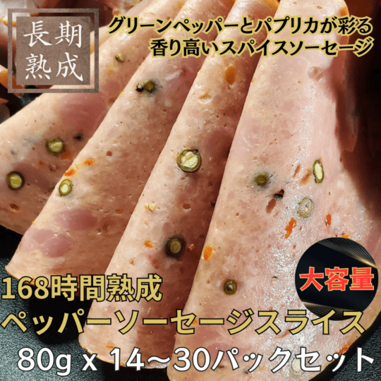【大容量/送料込】168時間熟成 ペッパーソーセージスライス 80g×14~30パックセット/オンラインショップ限定/保存料・化学調味料・結着剤・増量剤無添加/ドイツ製法/