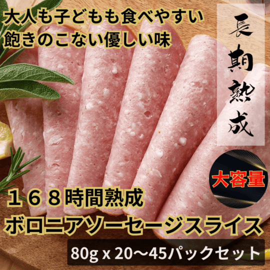 【大容量/送料込】168時間熟成 ボロニアソーセージスライス 80g×20~45パックセット/オンラインショップ限定/保存料・化学調味料・結着剤・増量剤無添加/ドイツ製法/