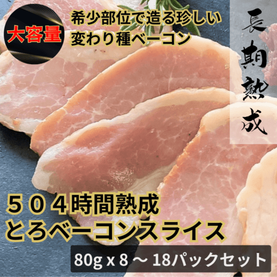 【大容量/送料込】504時間熟成 とろベーコンスライス 80g×8~18パックセット/オンラインショップ限定/保存料・化学調味料・結着剤・増量剤無添加/ドイツ製法/