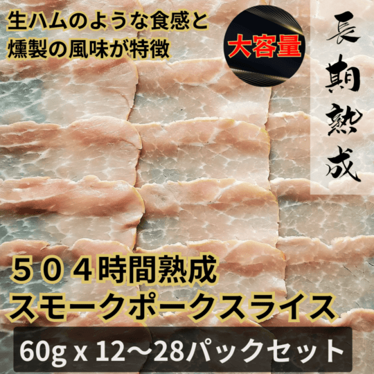 【大容量/送料込】504時間熟成 スモークポークスライス 60g×12~28パックセット/オンラインショップ限定/保存料・化学調味料・結着剤・増量剤無添加/ドイツ製法/