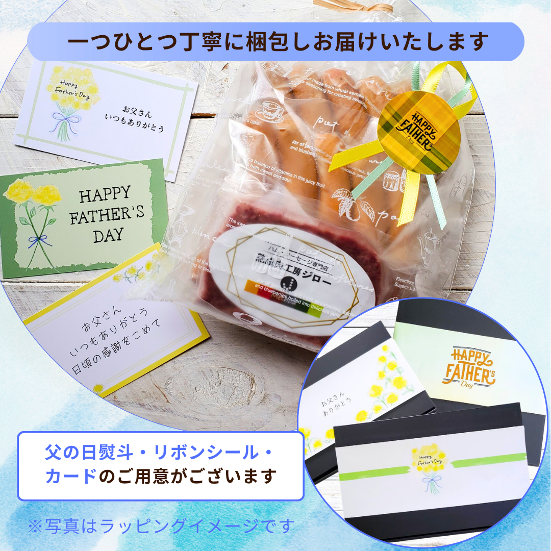 「熟成肉工房ジロー」を存分に感じられる厳選セット。大切なお父さんにだからこそ、余計なものを贈らない、体に大切なものだけを贈りたい、そんな贈り物としてぴったりです!