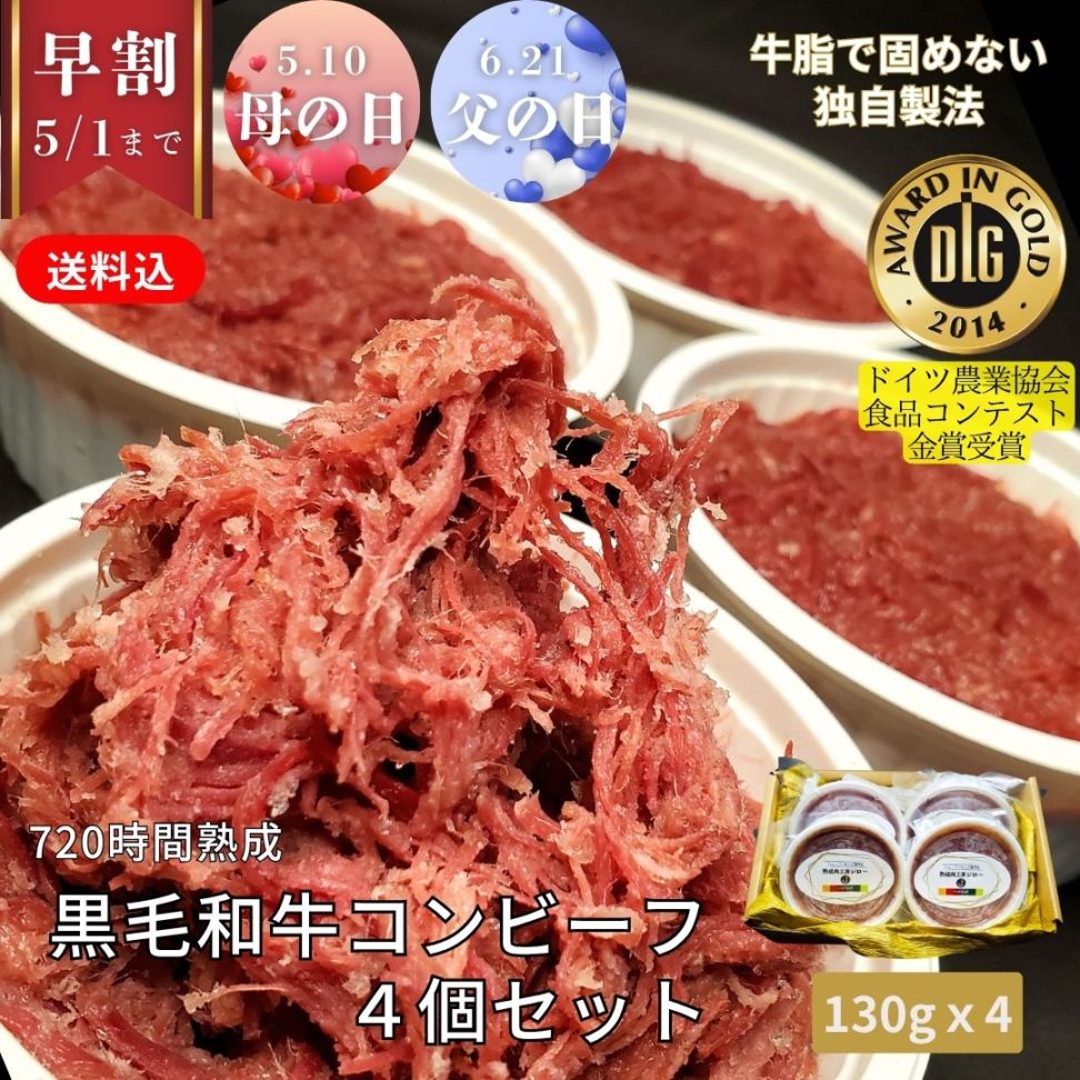 早割10%OFF【4個セット・送料込】720時間熟成 黒毛和牛コンビーフ 520g (130g×4p)/保存料・化学調味料・結着剤・増量剤無添加/ドイツ製法/