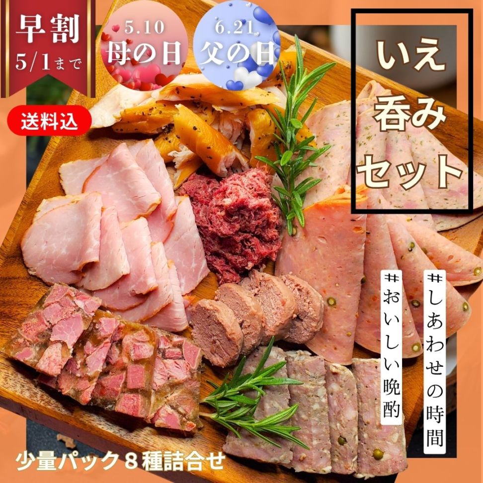 早割10%OFF【送料込】いえ呑みセット/保存料・化学調味料・結着剤・増量剤無添加/ドイツ製法/コンビーフ・スモークポーク・ササミスモーク・ソーセージ2種・パテ・フロマージュ・レバーペースト・
