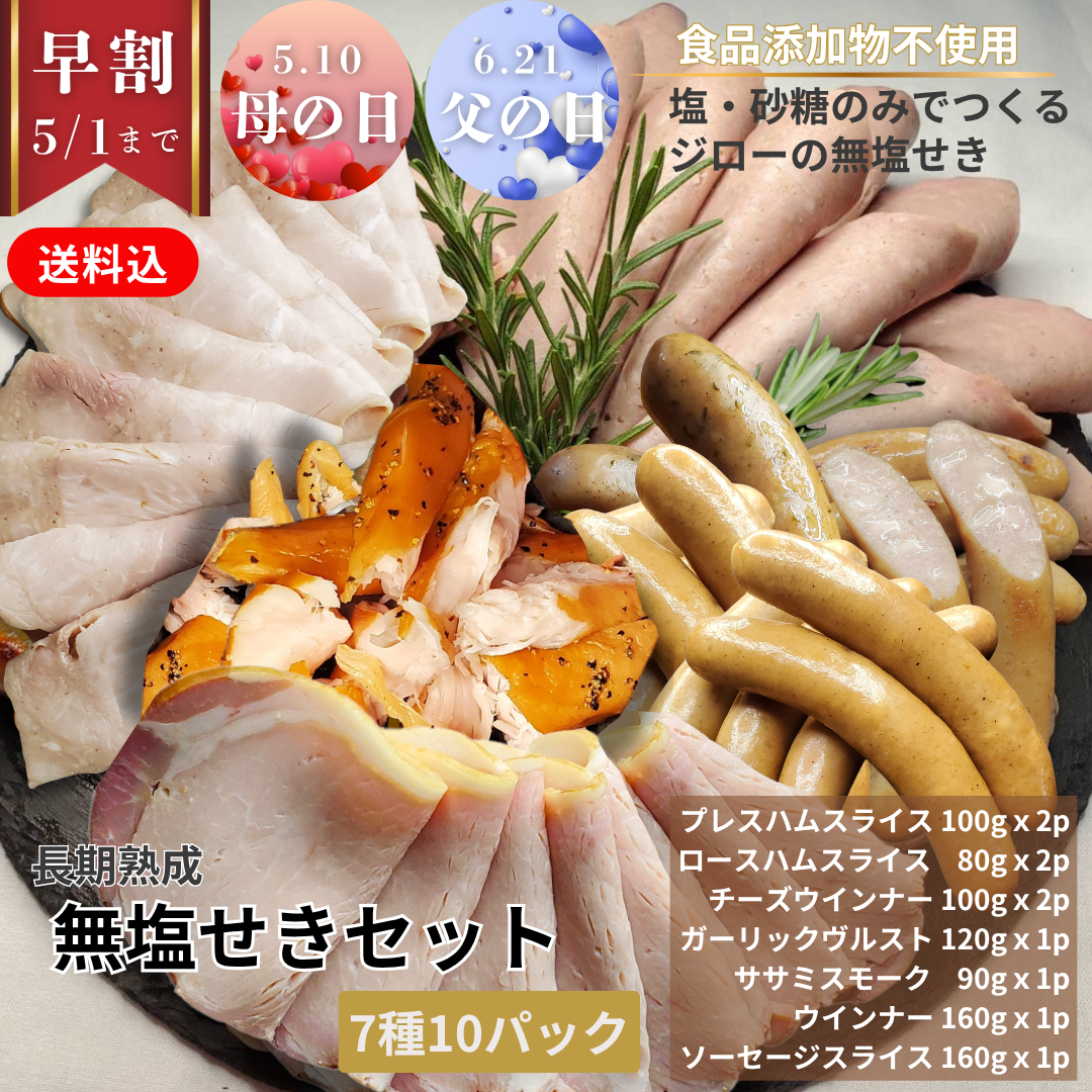 早割10%OFF【送料込】無塩せきセット/保存料・化学調味料・結着剤・増量剤・発色剤無添加/ドイツ製法/無塩せき
