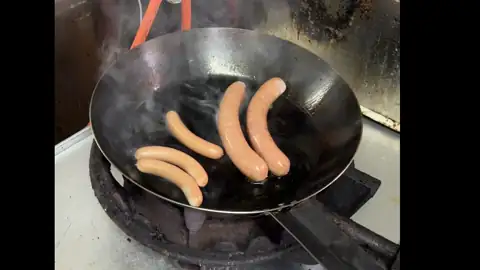 ハムやソーセージの下で火を焚き、桜のチップで燻すことで、煙臭さのない豊かな薫りに仕上げる「直火式」。気温や湿度に合わせて火力を細やかに調整し、燻製の時間を見極めます。