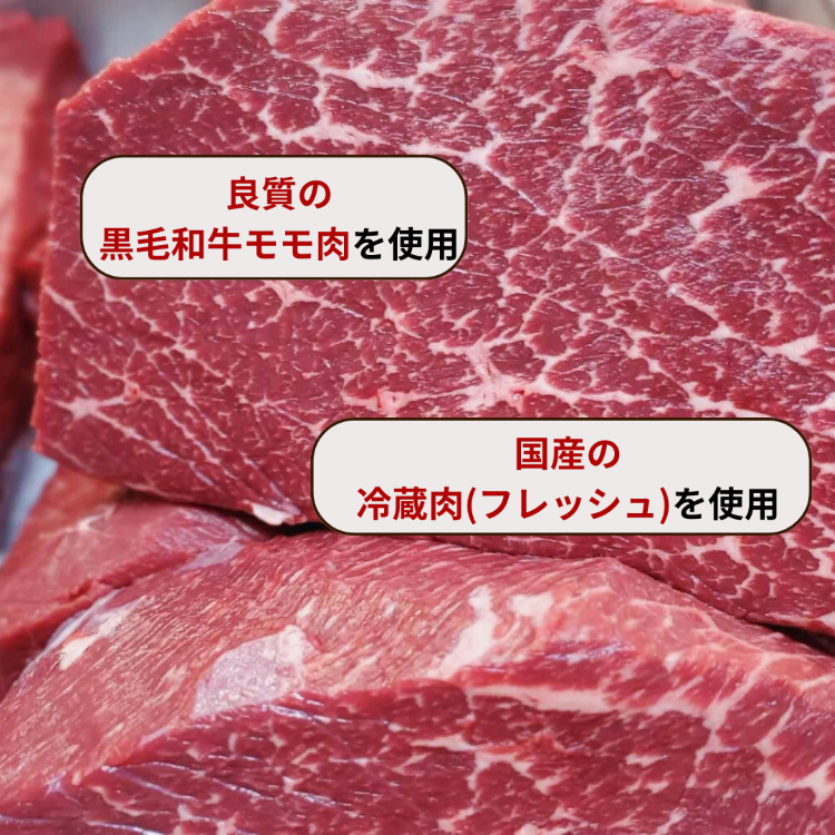 従来の牛脂で固める製法とは違い、ハム工房ジローは他社に真似できない独自製法で牛赤身本来の味を最大限の味わえます。