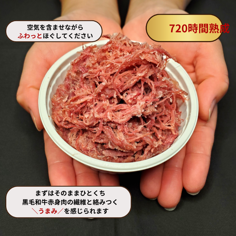 黒毛和牛のおいしさを凝縮させ、食感にこだわり、丁寧に手ほぐしした「720時間熟成黒毛和牛コンビーフ」。