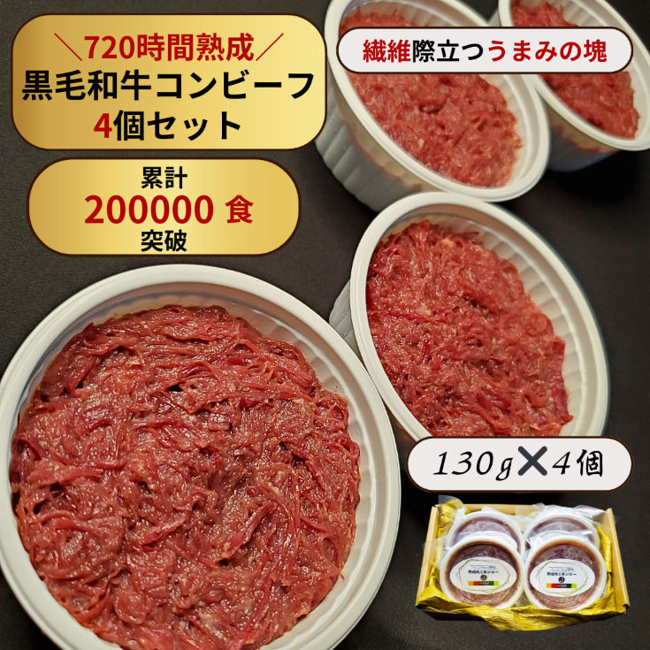 【早割10%オフ】【4個セット・送料込】720時間熟成 黒毛和牛コンビーフ 520g (130gX4p)/オンラインショップ限定/保存料・化学調味料・結着剤・増量剤無添加/ドイツ製法/