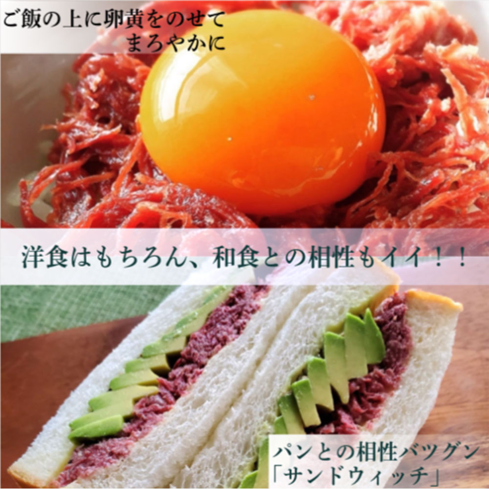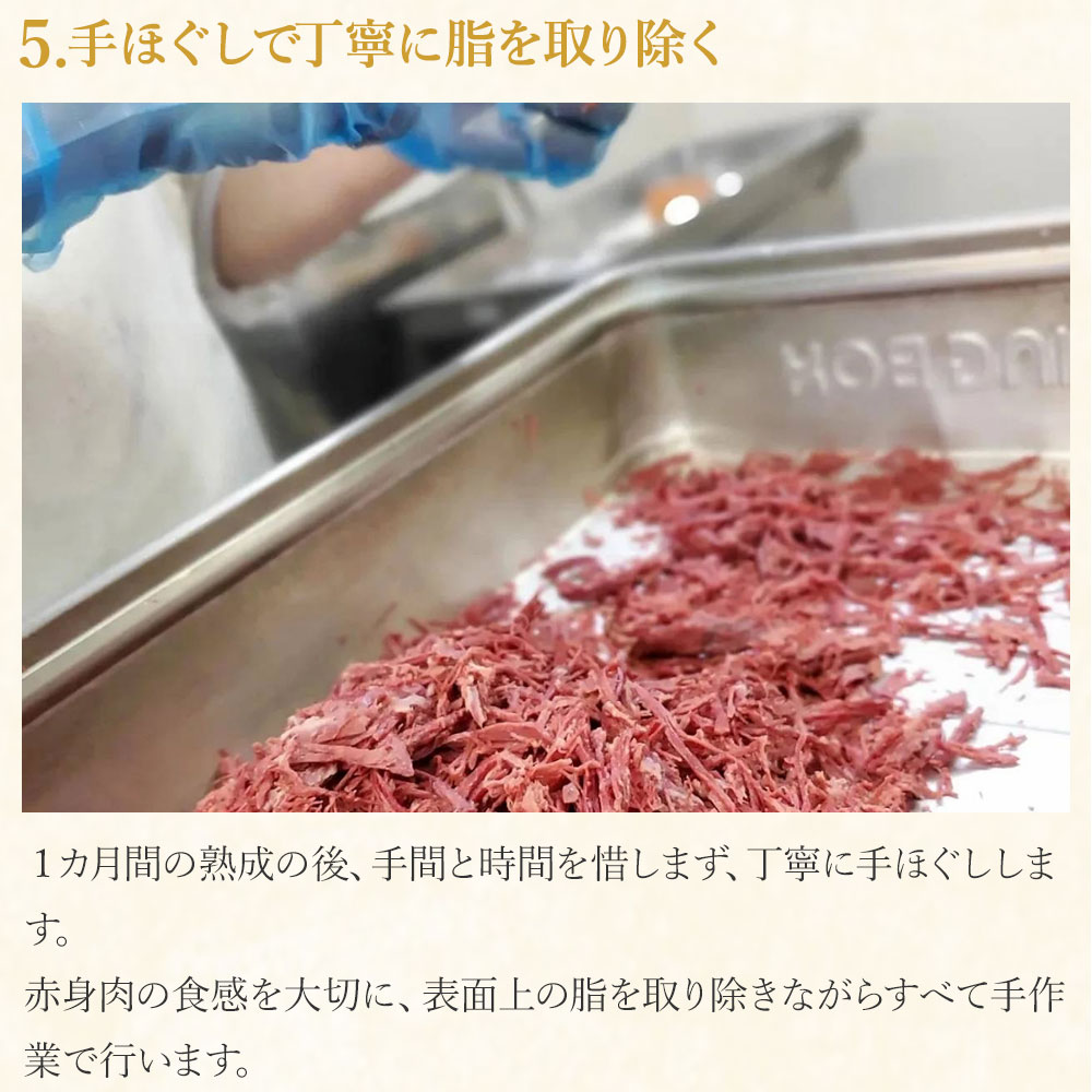 丁寧に手ほぐしすることによって、繊維が際立ち、食べごたえのある食感になります。